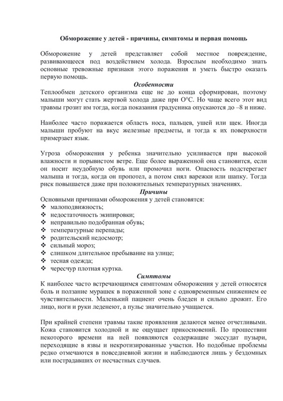 Обморожение у детей
